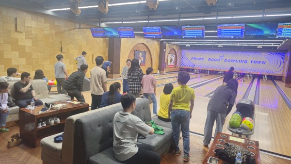 오후에는 볼링장에서 볼링 게임을 통해서 서로 팀 별로 협동심을 기를 수 있었습니다.
