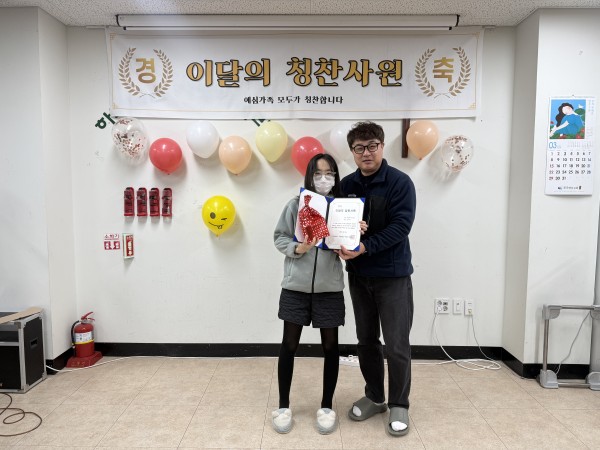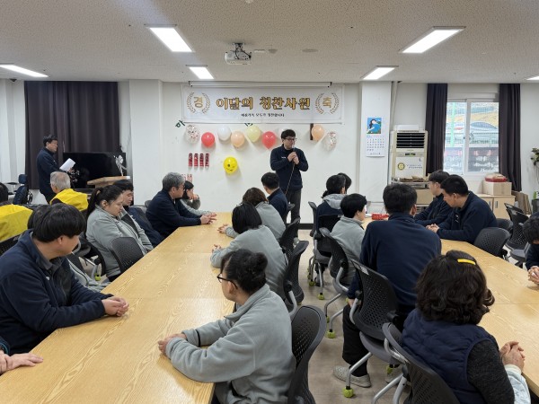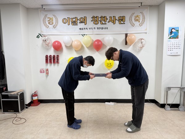 2026년 3월 6일 금요일, 예심하우스에서 근로자의 모범적인 태도와 성실한 근무 자세를 격려하기 위해 2월 칭찬사원 시상식을 진행하였습니다.