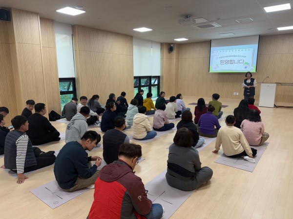 이후 국립진안고원치유원 내에서 조를 나누어 진행된 명상과 숲산책 프로그램을 통해 몸과 마음을 이완시키는 시간을 가졌습니다. 숲속의 맑은 공기와 자연의 소리 속에서 이용자들은 차분한 분위기 속에 마음의 안정을 느끼며 힐링의 의미를 되새겼습니다.