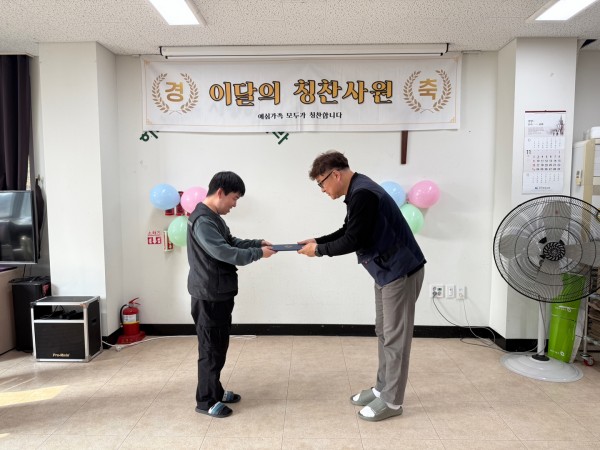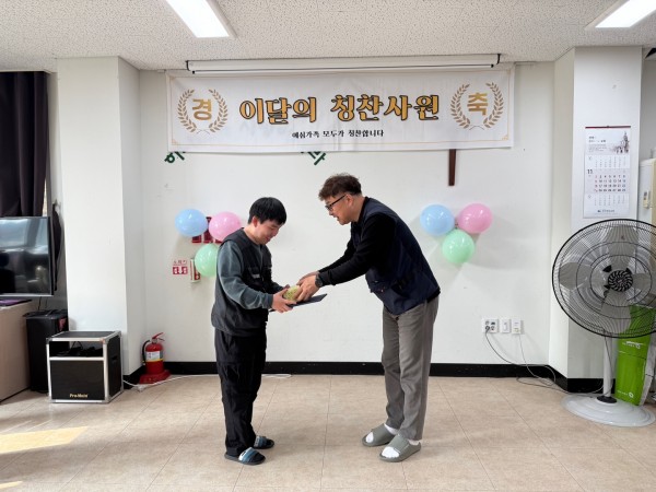 2025년 11월 13일 목요일, 예심하우스에서는 근로인과 훈련생의 모범적인 태도와 성실한 근무 자세를 격려하기 위한 10월 칭찬사원 시상식을 진행하였습니다.