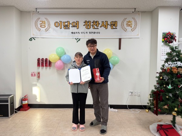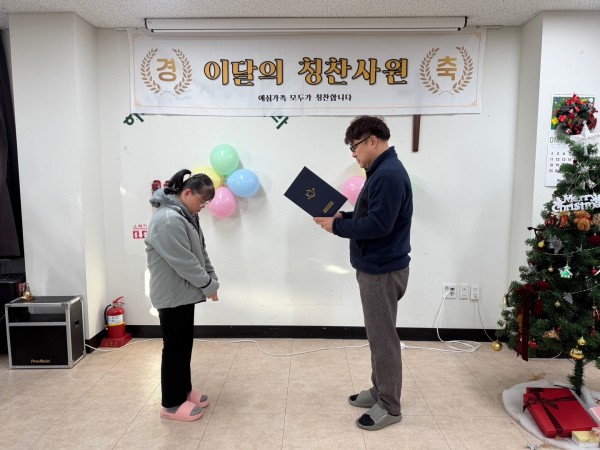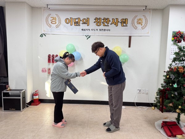 2026년 1월 8일 목요일, 예심하우스에서 근로자과 훈련생의 모범적인 태도와 성실한 근무 자세를 격려하기 위해 12월 칭찬사원 시상식을 진행하였습니다.