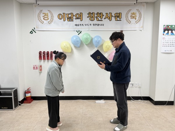 2026년 2월 5일 목요일, 예심하우스에서 근로자의 모범적인 태도와 성실한 근무 자세를 격려하기 위해 1월 칭찬사원 시상식을 진행하였습니다.
