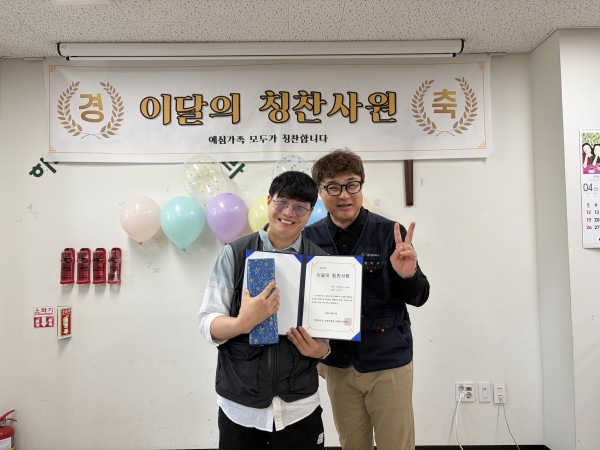 이번 달 칭찬사원으로는 강민영 훈련생와 임정구 근로자가 선정되었습니다.